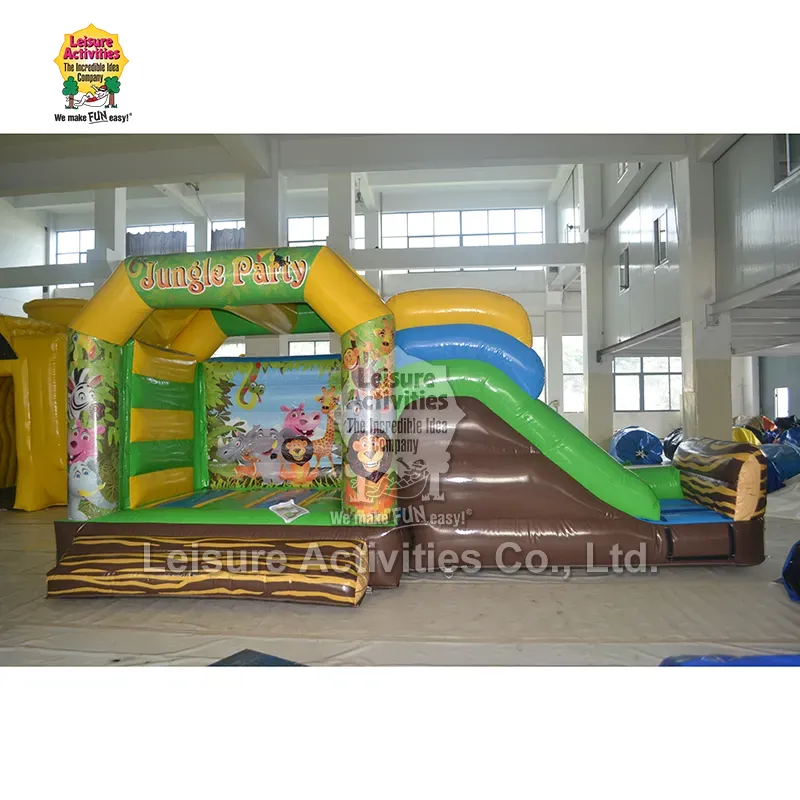 ກິດຈະກໍາ Leisure ມີໂຮງງານຂອງຕົນເອງແລະເປັນຜູ້ຜະລິດແລະສະຫນອງຂອງ Small Inflatable Multiplay Bouncy Castles Jungle party ກັບ Slide ໃນປະເທດຈີນ. Castle ອັດຕາເງິນເຟີ້ນີ້ສະຫນອງຄວາມມ່ວນຫຼາຍ, ລວມທັງການໂດດ, ປີນຂຶ້ນແລະເລື່ອນ, ແລະເຫມາະສົມສໍາລັບເດັກນ້ອຍອາຍຸ 3 ຫາ 10 ປີ.